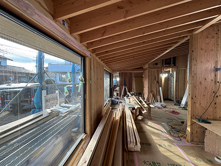 また、天井の化粧垂木と南の窓際が連続する「空を眺める家」、プライベートな中庭のある「国立のコートハウス」も順調に工事が進んでおります。